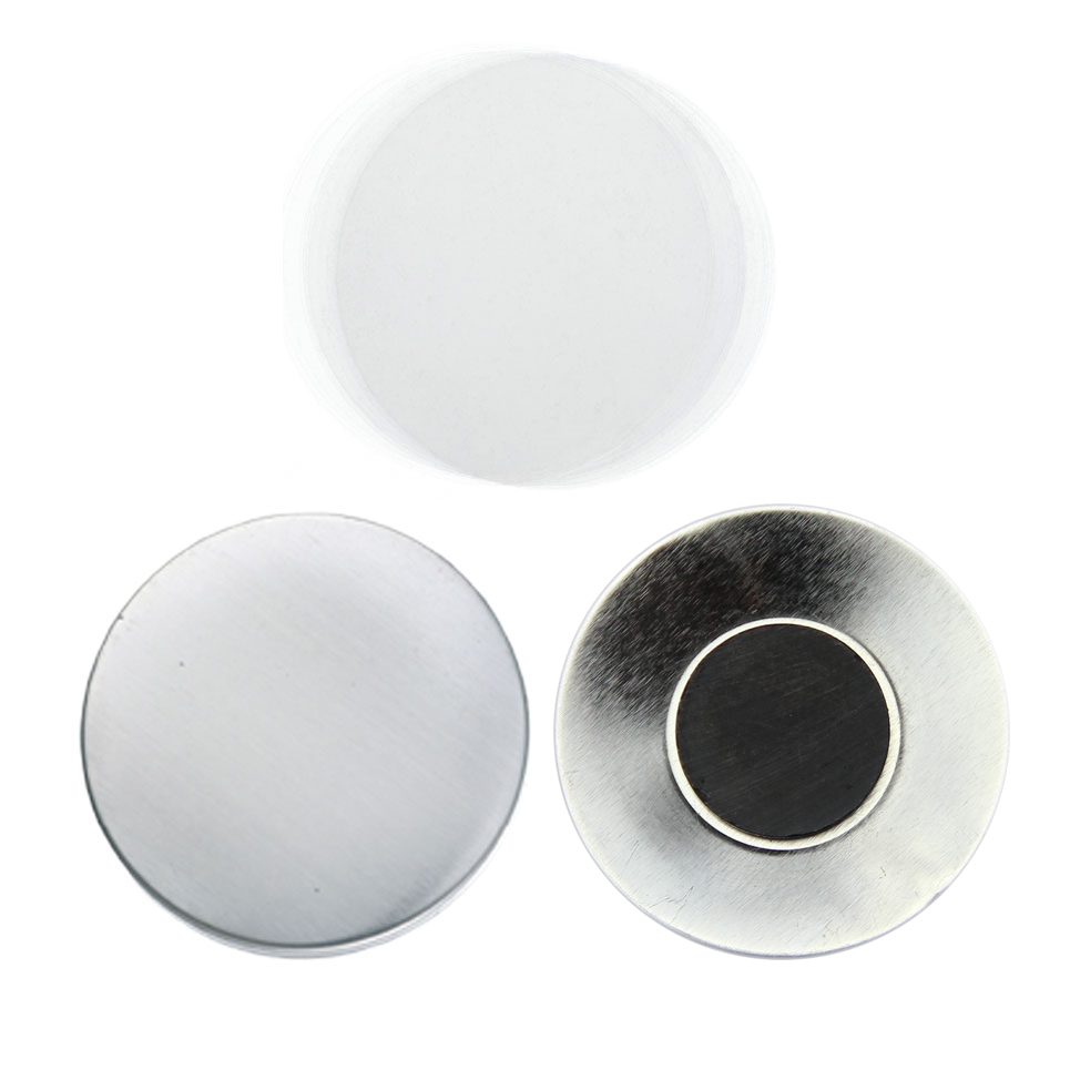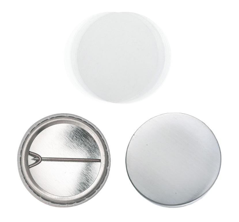 Die Buttonrohling Komplettsets bestehen aus Folien, Unterteil und Oberteil. Die Sets sind in verschiedenen Durchmessern und mit variablen Befestigungen verfügbar